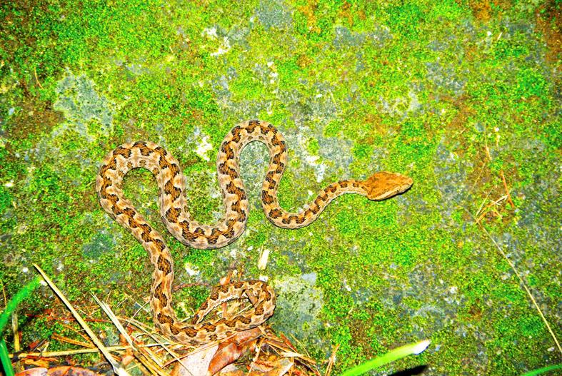 There are six poisonous snake species that are common in Taiwan: the brown spotted pit viper, the Chinese bamboo pit viper, the cobra, the many-banded krait, the Chinese copperhead and the Siamese Russell’s viper, said Yan Chun-fang (顏群芳), a physician at Wei-Gong Memorial Hospital.