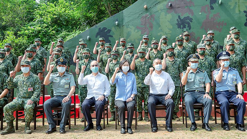 In other developments, President Tsai Ing-wen (蔡英文) visited the air force’s Air Defense and Missile Command, the Armaments Bureau’s 209 Factory and the Navy Fleet Command’s Hai Feng Brigade.