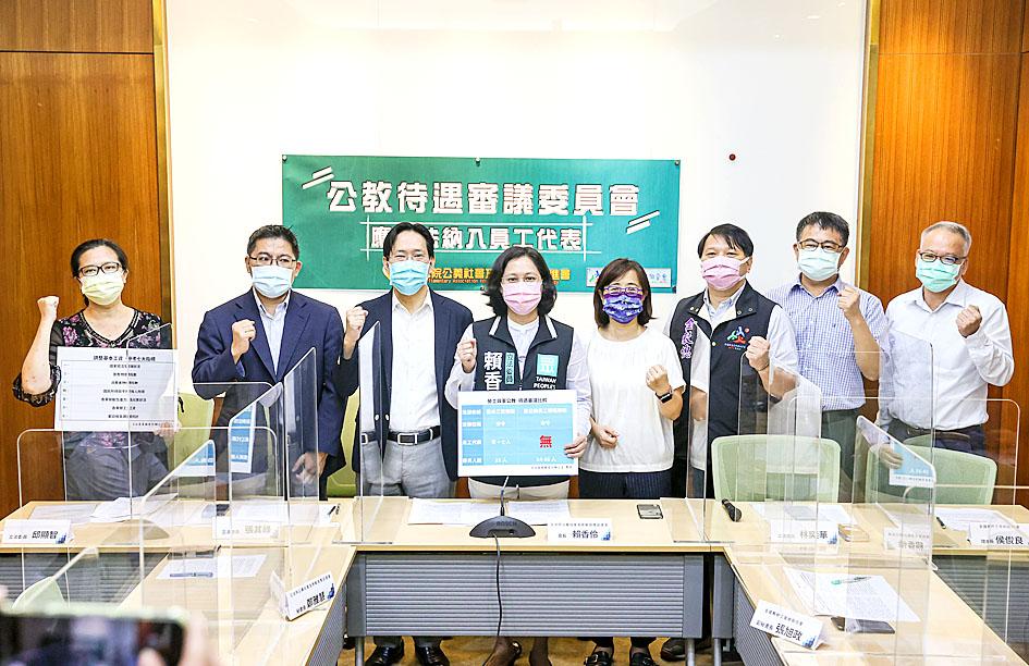He urged lawmakers to amend the Public Functionaries Remuneration Act (公務人員俸給法) and the Teacher Remuneration Act (教師待遇條例) to include representatives from civil servants’ and teachers’ groups in government reviews of their salaries and benefits.