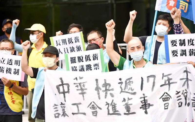 Chunghwa Express’ financial statements showed that its net profit rose from NT$63 million (US$2.27 million at the current exchange rate) in 2017 to NT$75 million in 2019, the union said, adding that workers’ contributions to this impressive performance should not be ignored.
