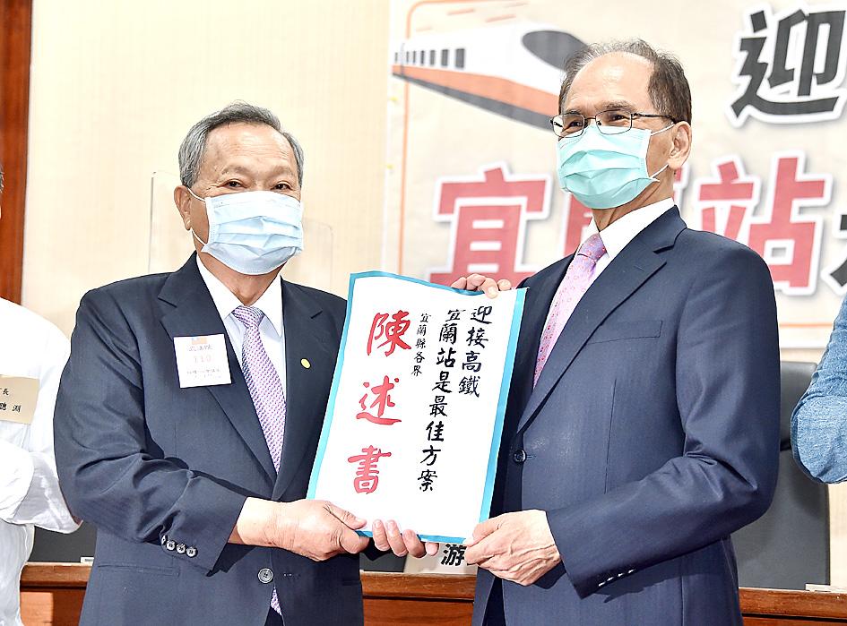 Democratic Progressive Party (DPP) Legislator Chen Ou-po (陳歐珀) and Yilan County Council Speaker Chang Chien-rong (張建榮) of the Chinese Nationalist Party (KMT), along with about 100 Yilan residents, yesterday petitioned at the Legislative Yuan in Taipei to have the terminus built at Yilan Station.