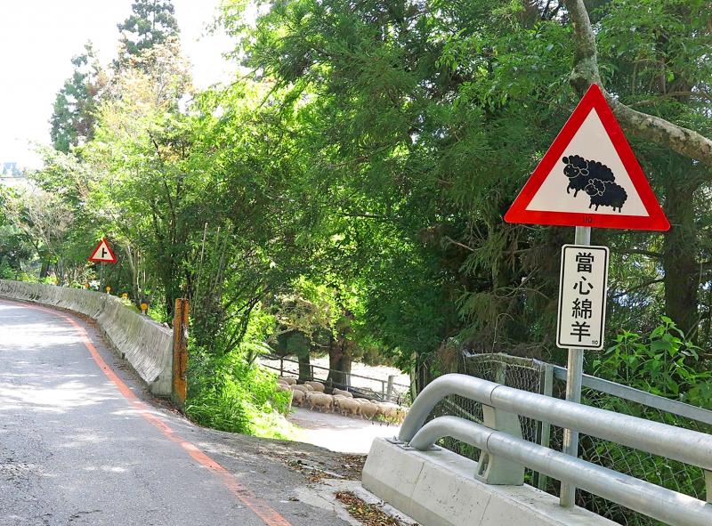 A cute animal crossing sign on a lonely mountain road in Nantou County has made a splash online.