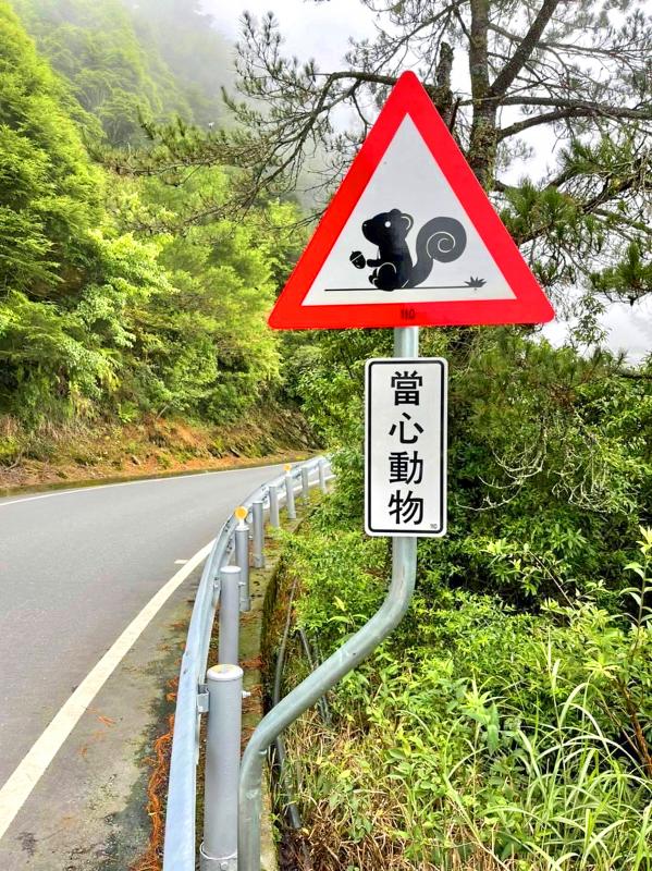 The sign of a Perny’s long-nosed squirrel, which had been installed on Provincial Highway 14A near Yuanfong (鳶峰) on Hehuanshan (合歡山), sparked discussions online after a photograph of it was posted on the Facebook page of Zhongbu Road Conditions.