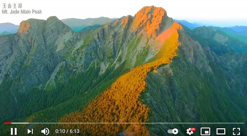 The ministry last month uploaded the video, titled 2021: Taiwan Bringing People Together (2021,台灣有你), on YouTube. It opened with aerial footage of a mountain labeled “Mt Jade Main Peak.”