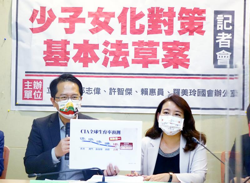 Legislators yesterday proposed enacting a basic law to address the nation’s dwindling birthrate.
