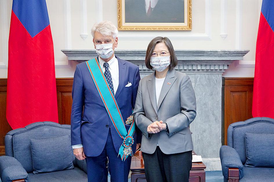 President Tsai Ing-wen (蔡英文) yesterday awarded French Senator Alain Richard with a national medal in recognition of his contribution to the development of relations between his country and Taiwan.