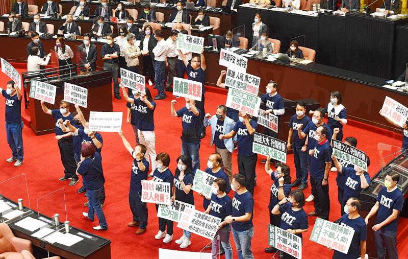 Earlier, the legislative session opened with a moment’s silence for the victims of a fire at a building in Kaohsiung on Thursday.