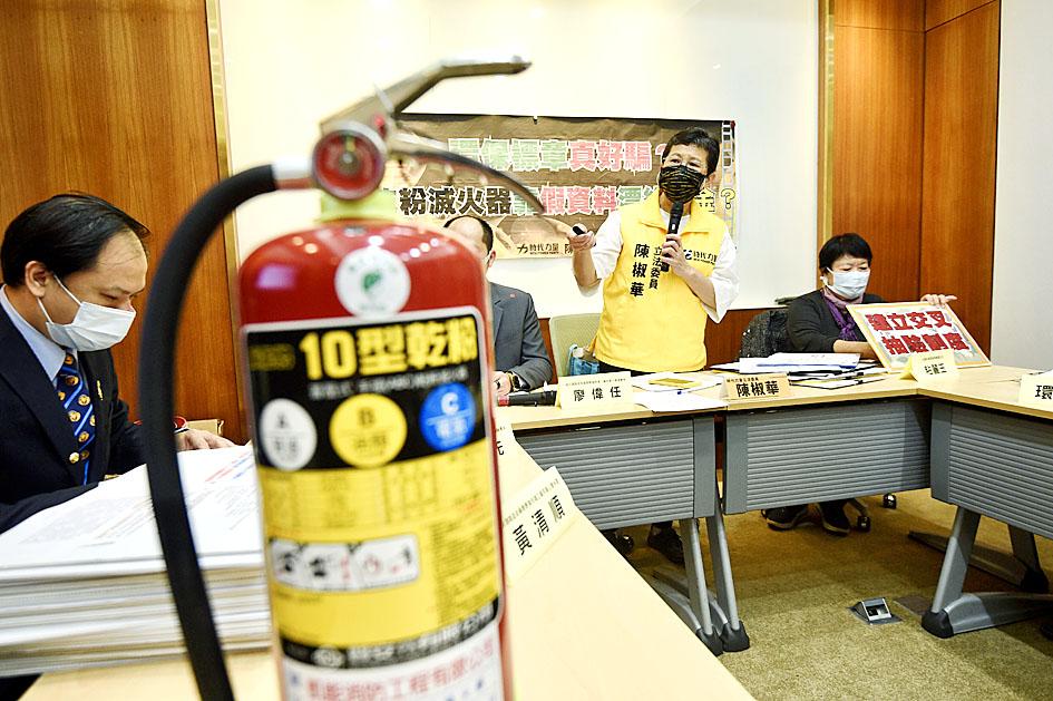 Chen said that all dry-powder extinguishers should undergo inspection, and manufacturers should deliver new data to the EPA and the Fire Extinguisher Union to verify that their products fulfill certification standards.