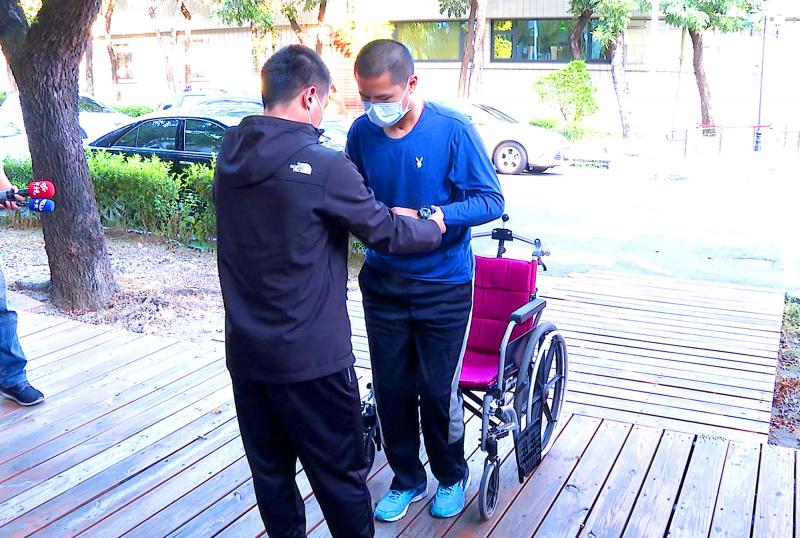 Chin Liang-feng said the exo-suit system is an experimental aid to correct his movements, and its continued utilization is still a matter of discussion at the hospital.