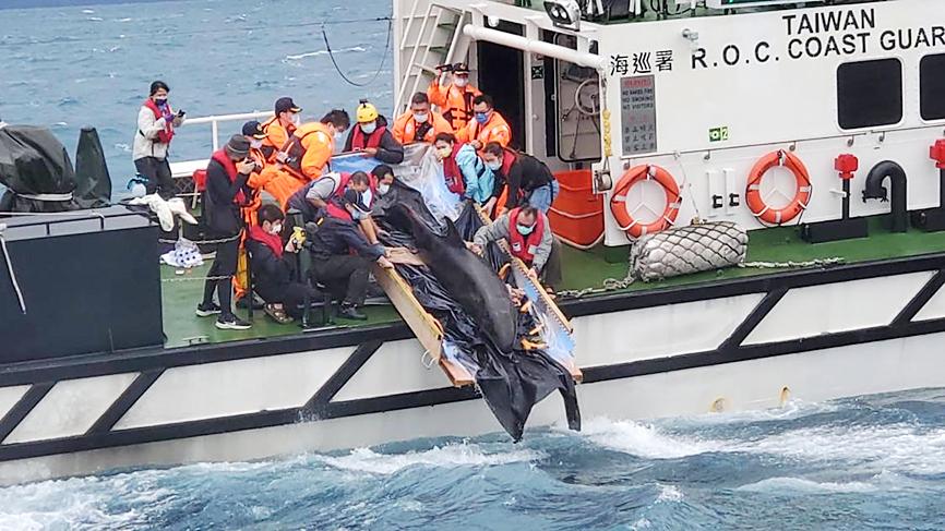 The 3.2m male false killer whale was found stranded on a beach in Yilan County on Wednesday last week, from where it was sent to a rescue center in Keelung.