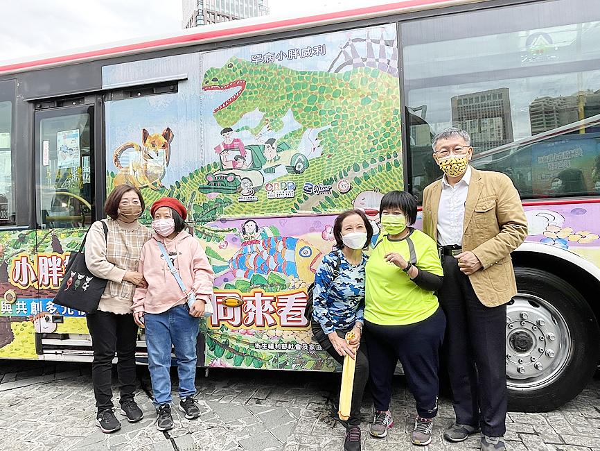 As the city government regularly places public service advertising on buses and MRT trains serving metropolitan Taipei, it decided to include works by artists with the genetic disorder that causes intellectual disability and obesity, Ko said, adding that the project would further their inclusion in the city’s art scene.
