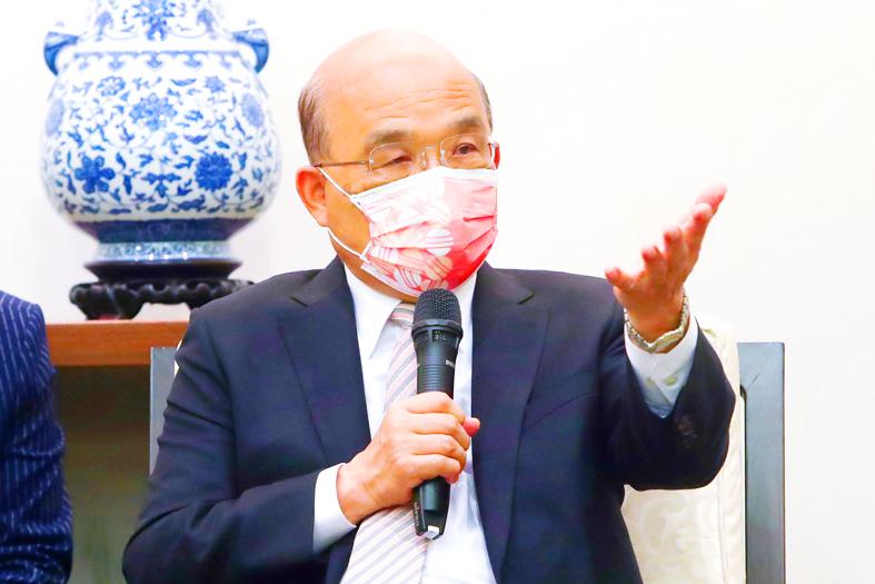 China is trying to exert political pressure on Taiwanese companies, Premier Su Tseng-chang (蘇貞昌) said yesterday, criticizing Beijing after it last week fined two Far Eastern Group firms over alleged breaches at factories in China.
