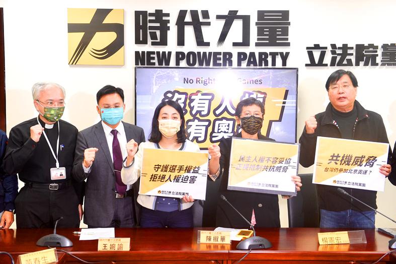 NPP Legislator Wang Wan-yu (王婉諭) said her party and the human rights groups support Taiwanese athletes competing in international competitions, but at the same time believe it equally important to speak out on human rights issues.