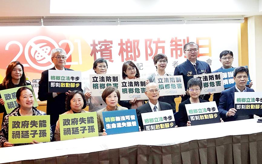 To mark Betel Nut Prevention Day today, the Taiwan Alliance for Areca Nut Control and Oral Cancer Prevention convened a news conference highlighting its dangers and calling for a dedicated law governing the narcotic.