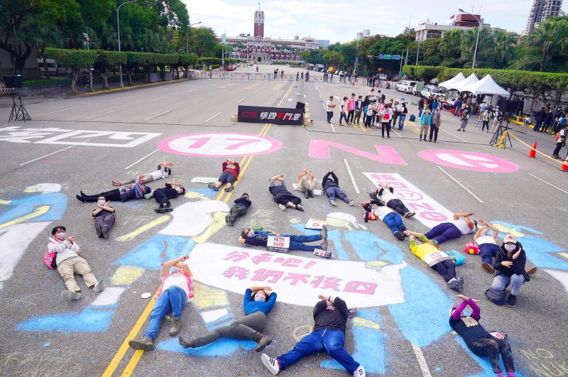Organized by the National Nuclear Abolition Action Platform, the event was aimed at encouraging people to vote “no” in a referendum on Dec. 18 that asks whether the government should restart construction on the mothballed Fourth Nuclear Power Plant in Gongliao District.