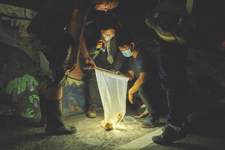 With flashlights in hand and shielded by protective gloves, dozens of volunteers from the Taiwan Amphibian Conservation Society worked through the night searching rice fields and vegetable plots for their quarry — the cane toad.