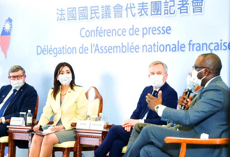 The six-member delegation, which also included French lawmakers Jean-Luc Reitzer, Frederique Dumas, Jean Francois Mbaye, Aina Kuric and Jean-Louis Bricout, left Taiwan Taoyuan International Airport on an EVA Air flight at 11:50pm.