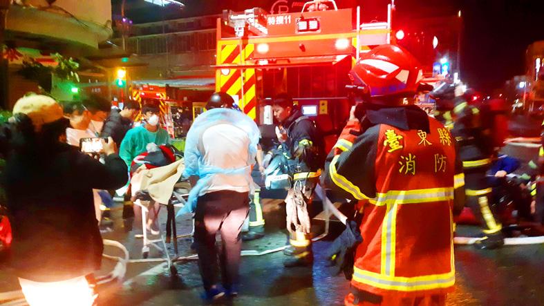 Soon after the fire broke out at about 1am, a man in his 60s, surnamed Yu (游), escaped from the fire on his own and told firefighters who had rushed to the scene that there were three other people in the burning building.