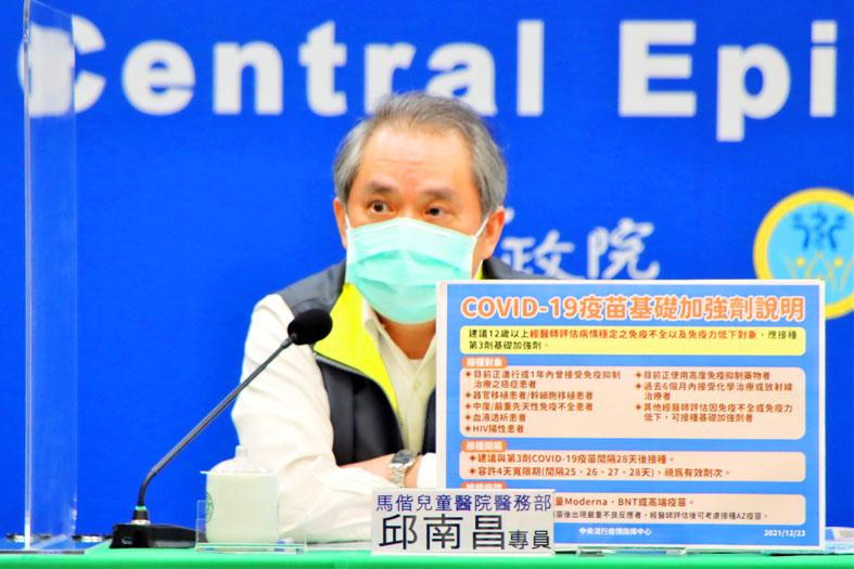 Those with congenitally or chronic condition-induced low immunity should get a booster dose to be adequately protected from COVID-19, Mackay Memorial Hospital Division of Pediatric Infection physician Chiu Nan-chang (邱南昌) told a CECC news conference.
