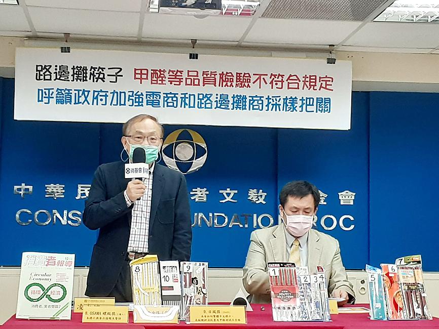 The foundation in August randomly purchased 10 brands of chopsticks from stores in Taipei and New Taipei City, as well as online, foundation secretary-general Hsu Tse-yu (徐則鈺) told a news conference in Taipei.