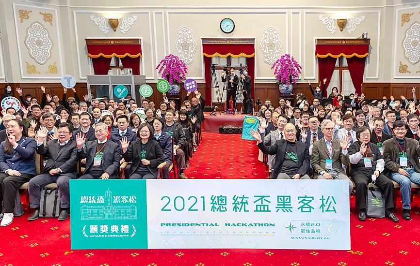 Climate action was the focus for teams in the international track, many of whom included Taiwanese, Tsai added, recognizing two winners who created systems to help farmers adapt to climate change and drivers switch to cycling.