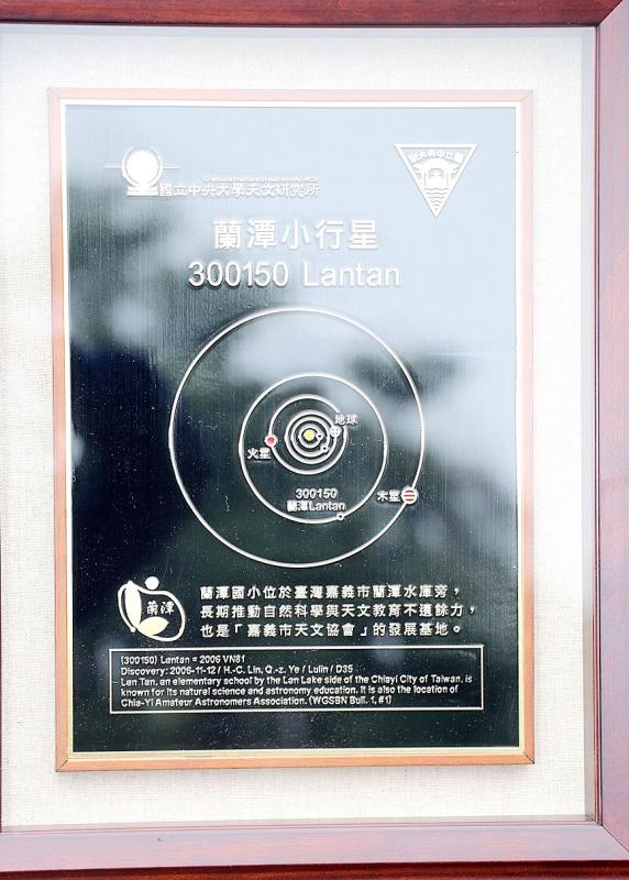 Chiayi City’s Lantan Elementary School was on Saturday presented with a plaque reading “Lantan 300150,” in honor of a dwarf planet named after the school.