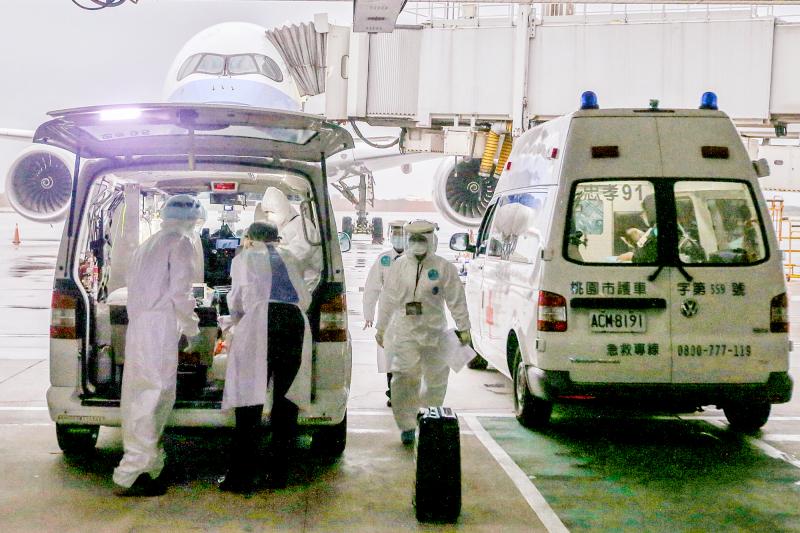 Victor Wang (王必勝), deputy head of the CECC’s medical response division and the center’s on-site commander at the Taoyuan airport, said that the 217 passengers arrived on five flights: one from Seattle, three from Los Angeles and one from Sydney.