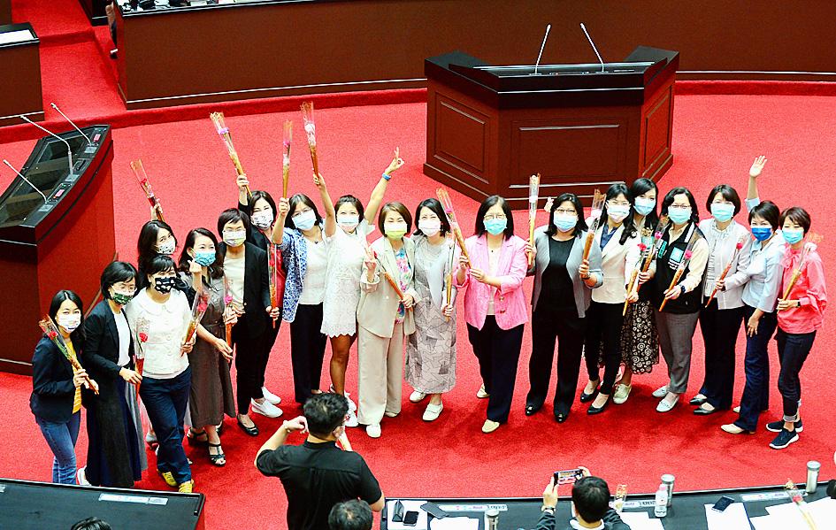 Female lawmakers in Taiwan accounted for 41.6 percent of the Legislative Yuan in 2020, and rose to 42.5 percent this month, when Democratic Progressive Party Legislator Lin Ching-yi (林靜儀) won a legislative by-election in Taichung’s second district, the committee said.