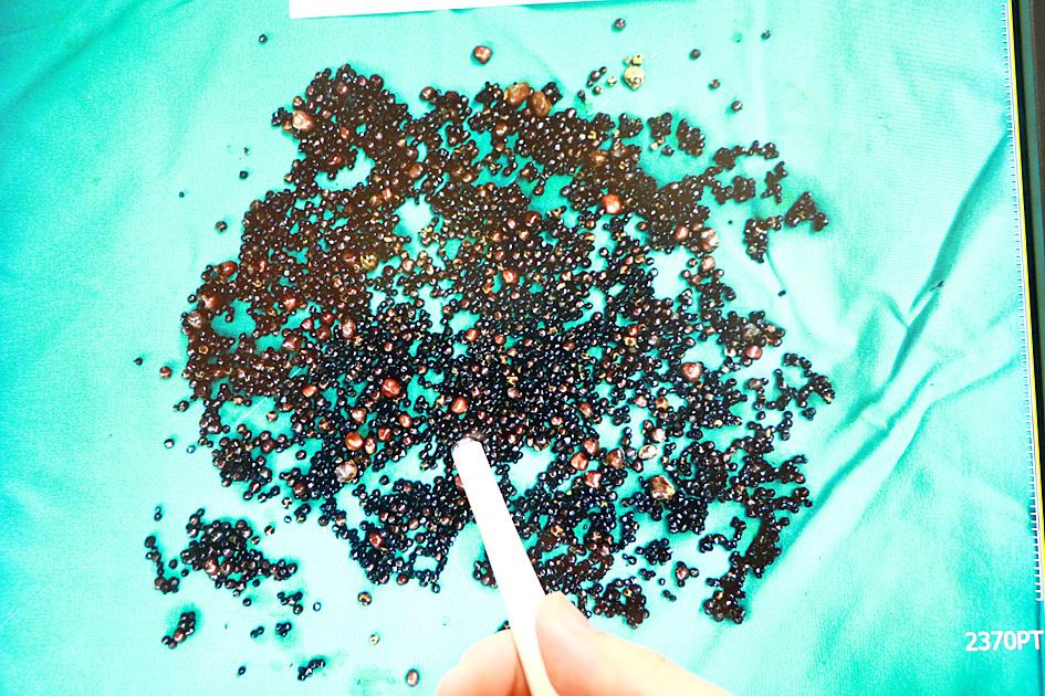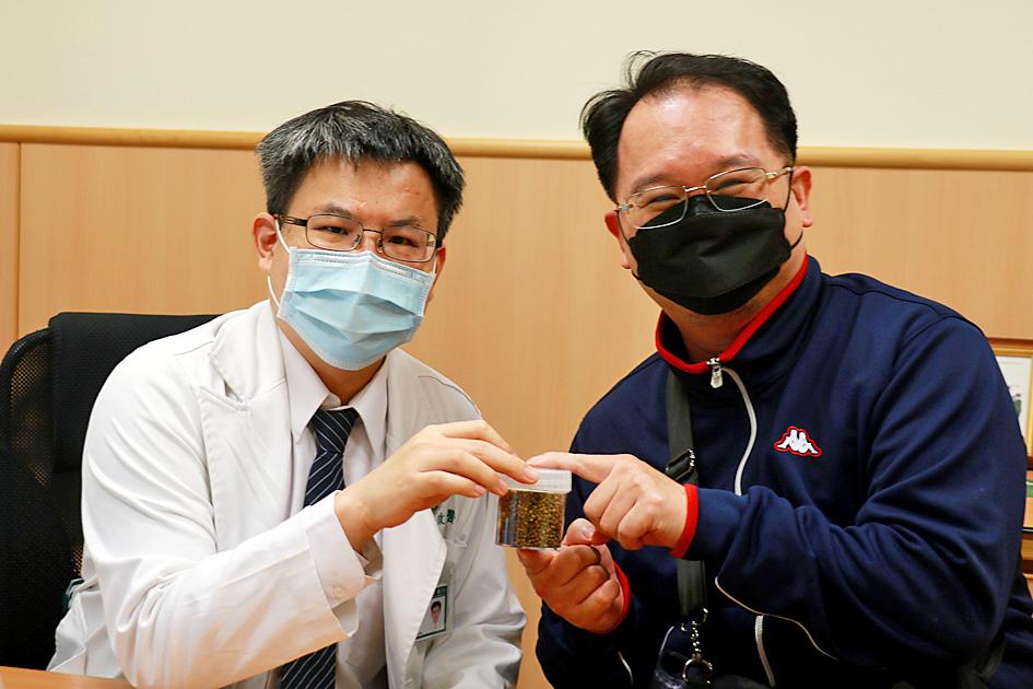 Taichung Tzu Chi Hospital Division of General Surgery director Yu Cheng-chan (余政展) said he was astonished that there were so many, adding that removing 10 or 20 gallstones at one time was a considerable amount.