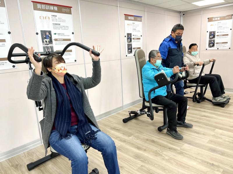 At the news conference, a man surnamed Chen (陳) was invited to share his experience of exercising at the Smart Senior Health Promotion Center established by National Yunlin University of Science and Technology as a demonstration site for senior fitness clubs.
