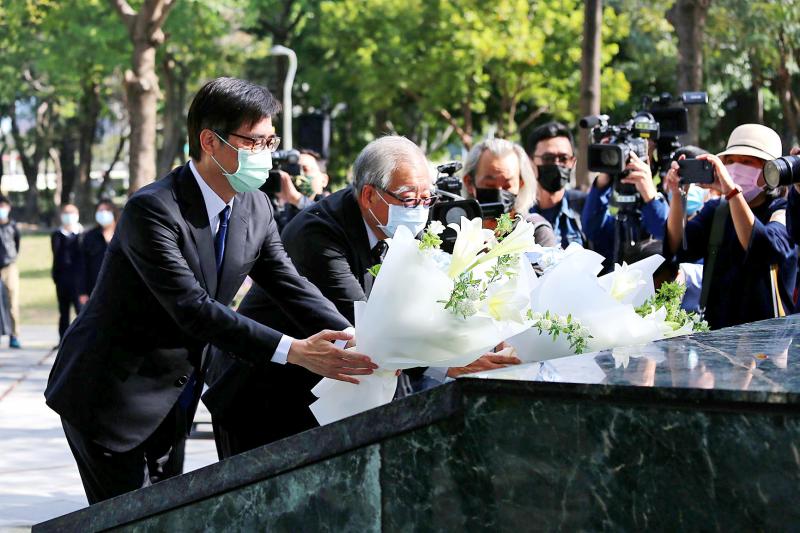 At a commemoration event in Kaohsiung held each year by civic groups, Chen Chi-mai said he represented all city residents by presenting lilies to the surviving family members of victims of the 228 Massacre.