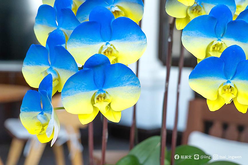 The “Ukraine-color orchids” have been presented to President Tsai Ing-wen (蔡英文) and Vice President William Lai (賴清德) as gifts, Taiwan Orchid Growers Association secretary-general Tseng Chun-pi (曾俊弼) said.