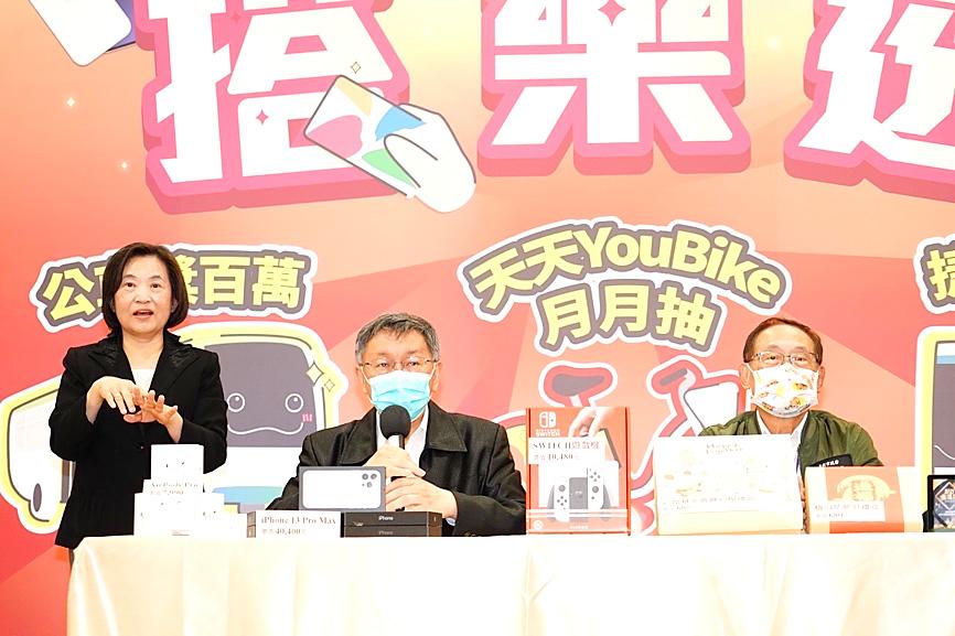 Taipei Mayor Ko Wen-je (柯文哲) told a news conference on Friday that the department hopes that the raffle would encourage residents to resume taking public transportation, saying that it would help reduce carbon emissions and alleviate traffic congestion.