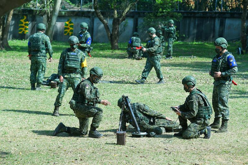 After observing the training, President Tsai Ing-wen (蔡英文) said the situation in Ukraine showed that in addition to international support and assistance, a country’s defense depends on the unity of its people.