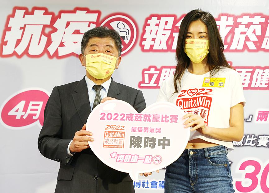 Minister of Health and Welfare Chen Shih-chung (陳時中), who has been smoking for 52 years, yesterday signed up for the Health Promotion Administration’s (HPA) smoking cessation competition to encourage other people to quit smoking.