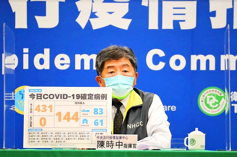 Taiwan yesterday reported 431 new domestic cases, the CECC said, adding that four of them have moderate symptoms.