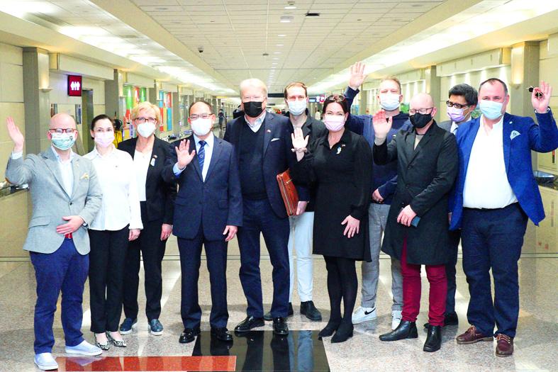 The group was welcomed by Deputy Minister of Foreign Affairs Harry Tseng (曾厚仁). They greeted reporters at the airport, but did not make a statement before leaving.