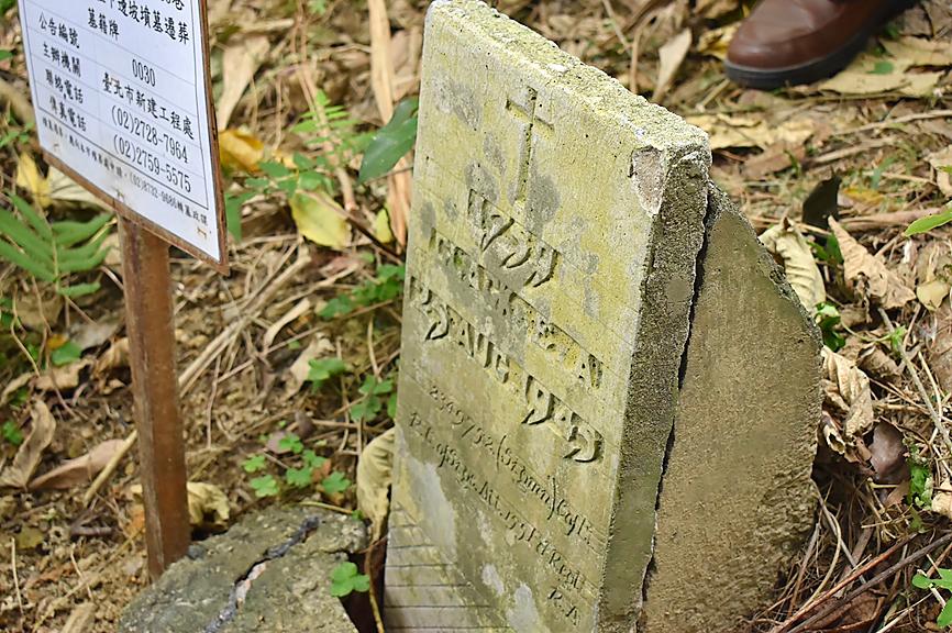 The headstone, discovered during a burial site relocation project in Xinyi District (信義), had been reported to police as missing by Taipei City Councilor Hsu Chia-pei (許家蓓).