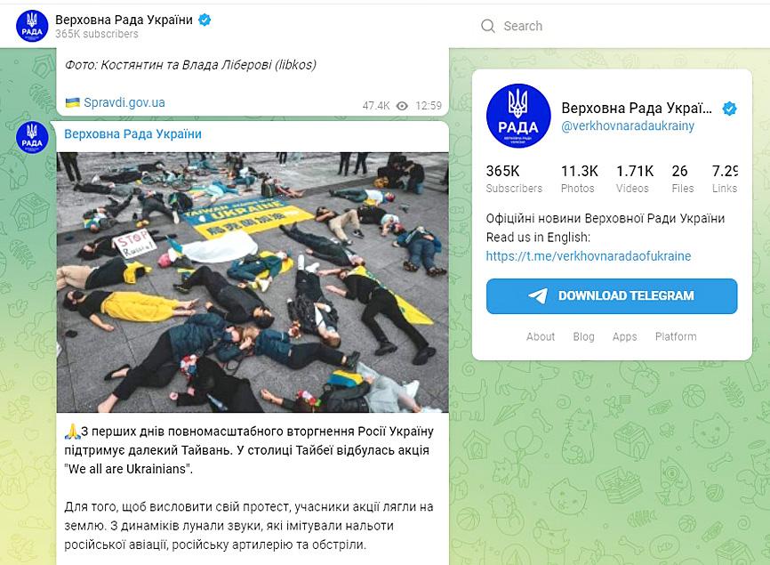 The Ukrainian parliament on Monday expressed its gratitude for Taiwan’s support amid the Russian invasion.