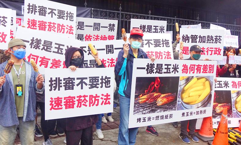 The protest was in response to the legislature’s Social Welfare and Environmental Hygiene Committee considering changes to the Tobacco Hazards Prevention Act (菸害防制法) that would ban e-cigarettes and limit HTPs. Amendments to the Narcotics Hazard Prevention Act (毒品危害防制條例) to restrict e-cigarettes are also be considered by the Judiciary and Organic Laws and Statutes Committee.