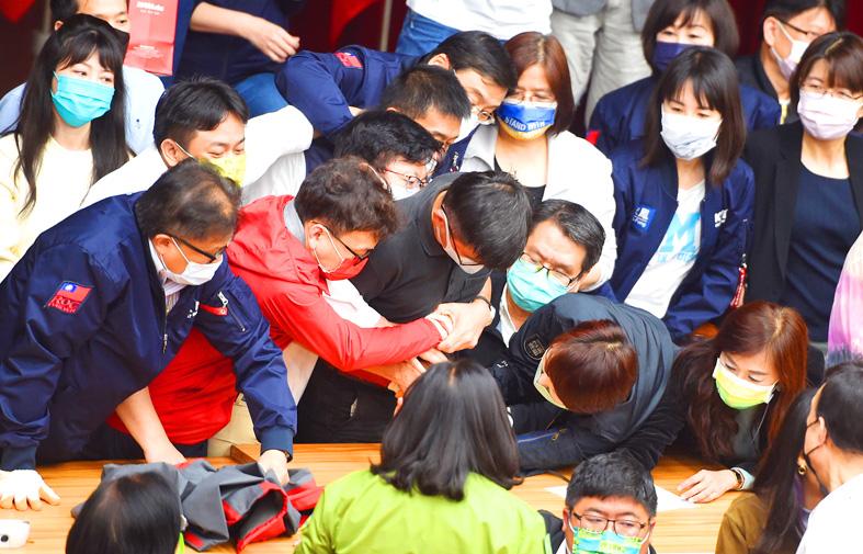 The DPP headquarters accused the KMT of “violent actions” in the legislature.