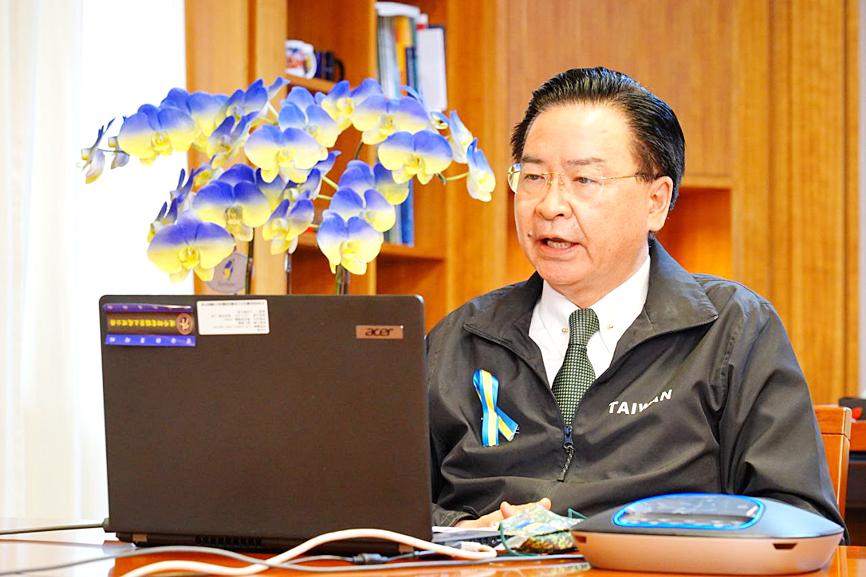 Minister of Foreign Affairs Joseph Wu (吳釗燮) on Friday told the mayor of Ukraine’s capital that their democracies stand on “the front line of resisting” large authoritarian neighbors as Wu announced a donation of US$8 million to Kyiv and Ukrainian medical institutions.