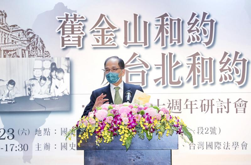 It contradicts remarks by Legislative Speaker You Si-kun (游錫堃), who late last month at a conference marking the “70th Anniversary of the Treaty of San Francisco and the Treaty of Taipei” said that under the Treaty of San Francisco, which came into force in 1952, Japan renounced its rights to Taiwan and Penghu, while leaving the areas’ legal status undetermined, to be resolved later under the principles of self-determination and the peaceful settlement of disputes.