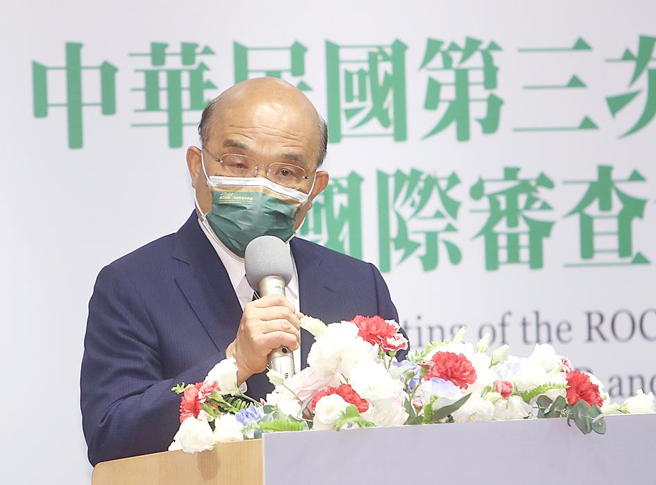Premier Su Tseng-chang (蘇貞昌) yesterday welcomed nine international experts to the opening of a week of meetings to review Taiwan’s implementation of two UN human rights covenants.