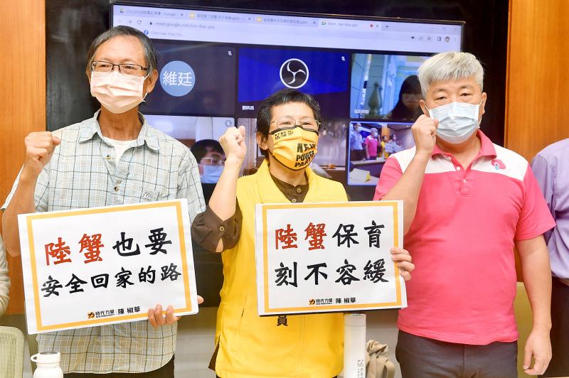 New Power Party Chairwoman Chen Jiau-hua (陳椒華) held a news conference to warn about the issue as the land crab breeding season approaches.