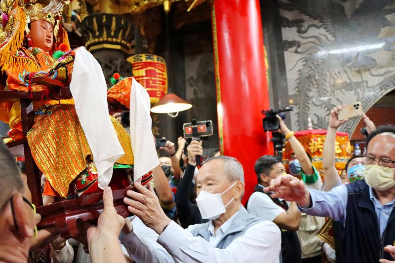 Despite restrictions during a COVID-19 outbreak, with organizers permitting registration only for people who provided evidence of having had three COVID-19 vaccine shots, 98,000 people signed up, said Hong Wen-hua (洪文華), a member of the temple’s management committee.