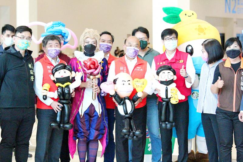 He was accompanied by Minister of Health and Welfare Chen Shih-chung (陳時中) and Kaohsiung Mayor Chen Chi-mai (陳其邁) at the Kaoshiung station.