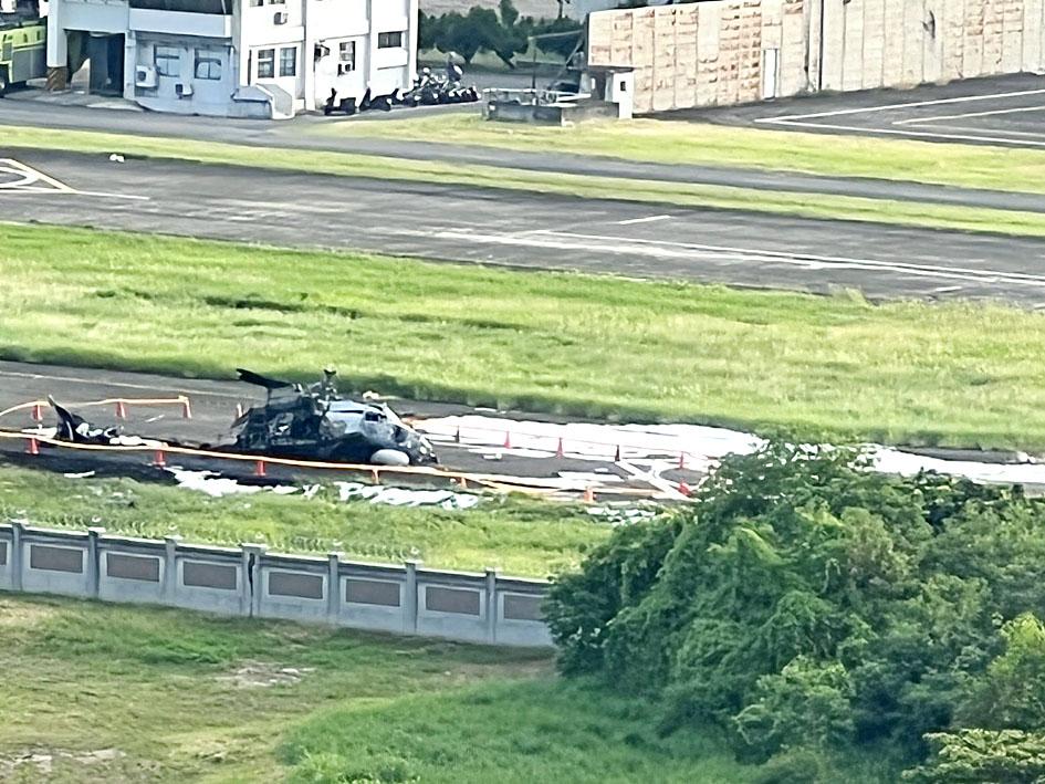 A statement released late yesterday evening said that the helicopter was greatly damaged, and the pilot, a captain surnamed Cheng (鄭), and the copilot, a lieutenant colonel surnamed Chen (陳), sustained lacerations and bone fractures.