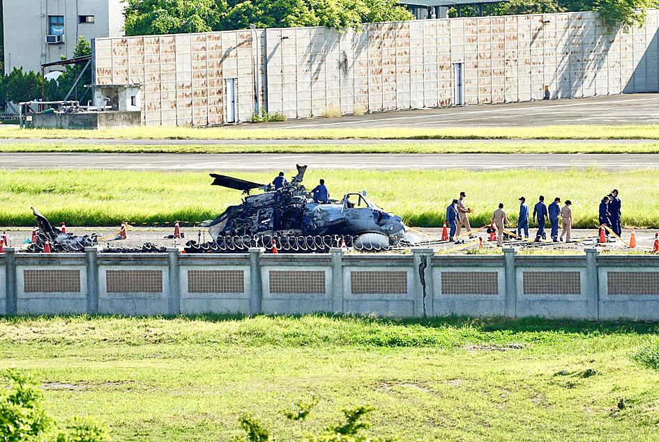 The aircraft “made a hard landing” on the tarmac of the Kaohsiung Zuoying naval base on Wednesday at about 4pm, injuring all four crew members, with one in critical condition, navy Chief of Staff Vice Admiral Chiang Cheng-kuo (蔣正國) said at a news conference yesterday.