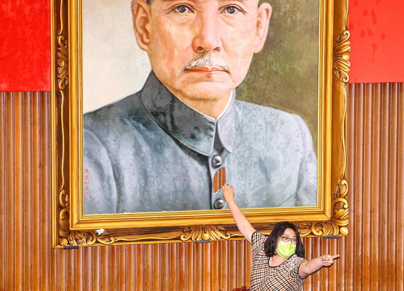 Officials said provisions of the National Emblem and National Flag of the ROC Act (中華民國國徽國旗法) mandate that the national flag and Sun’s portrait be displayed front-and-center of the main chambers of government offices.